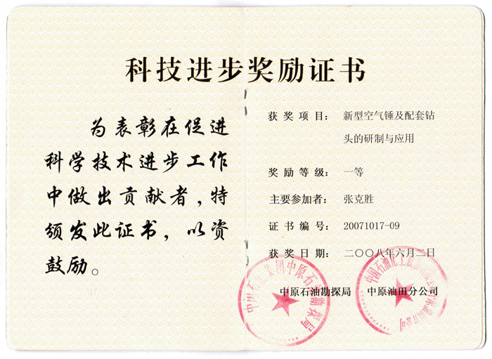• 空氣錘獲獎(jiǎng)證書(shū)